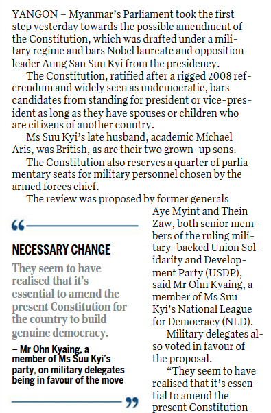Myanmar change constitution Published March 16, 2013 at 395 × 602 in Myanmar: Parliament to change constitution, Aung San Suu Kyi at the crossroads