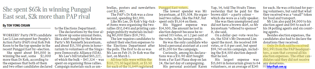 Punggol East final Published March 28, 2013 at 1327 × 291 in Singapore: Candidates’ election expenses made transparent