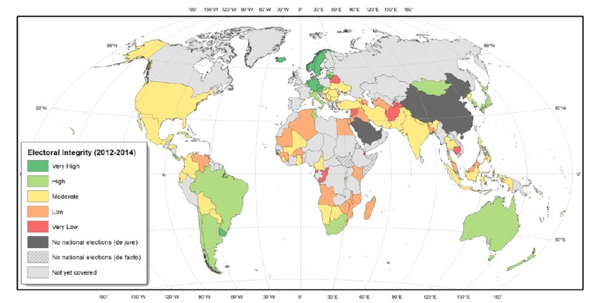 Electoral Integrity 2014 map Published February 17, 2015 at 1185 × 602 in Clean Elections in Southeast Asia?