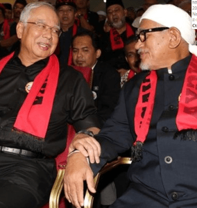 Below: Former UMNO president Najib Razak with PAS leader Hadi Awang