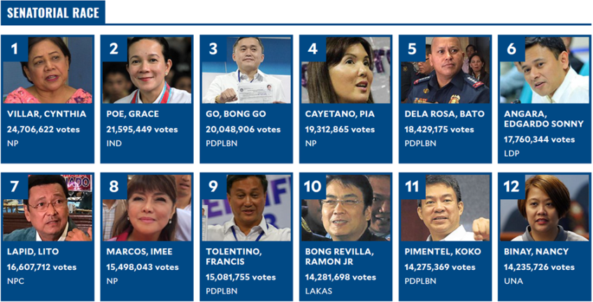 12 senators Published May 15, 2019 at 940 × 479 in Mid-term elections in the Philippines: Landslide for President Duterte