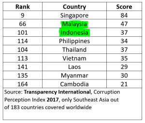 Partyforumseasia: Most of the region’s countries, except Singapore – and Malaysia to a certain degree – rank as rather corrupt in Transparency International’s Corruption Perception Index (CPI). Here is an excerpt of the CPI 2017 for Southeast Asia: