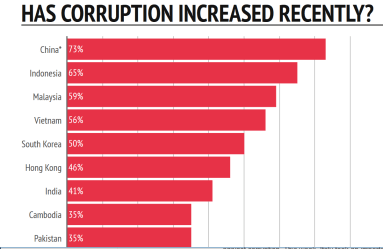 Among the ASEAN countries, Indonesia, Malaysia, and Vietnam seem to have the biggest corruption problems in the perception of their citizens. Malaysia obviously because of the festering and unresolved 1MDB scandal with a major involvement of Prime Minister Najib Razak who is also chairman of the ruling UMNO party, and Vietnam with the rampant daily petty corruption which tarnishes the ruling Communist Party though it tries to reduce it. Asked whether corruption has recently increased, the Indonesian respondents are even more critical than the Malaysians and Vietnamese, probably because of the ongoing corruption saga with the Golkar party and its chairman Setya Novanto.